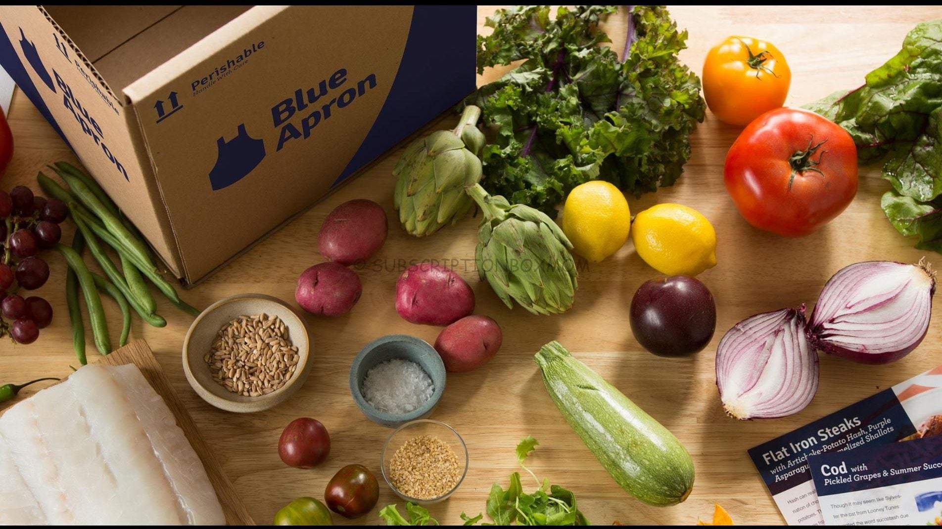 Blue Apron is a meal subscription box that sends you delicious recipes and all the ingredients you need to make the dishes.