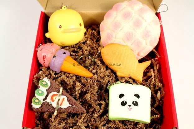 Each month we select 6 unique Kawaii Squishies shipped in our bright red box, delivered right to your door! Each Squishy is made out of soft squeezable foam and can also be used as a key chain or phone charm. Some of the food styles look so real you may want to eat them. But don't! So squeezy and soft, they make for a great stress reliever too.