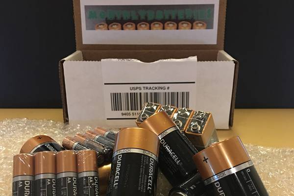 MonthlyBatteries sends name brand batteries each month to your door for as low as $2.00/month. You can get a wide range of battery sizes, including hearing aid batteries.