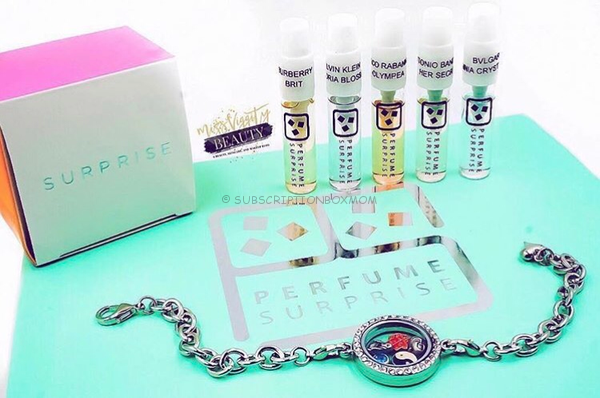 Perfume Surprise is the only monthly perfume subscription service with luxury designer perfume brands and jewelry for you to enjoy and keep. Each month you will receive five spray bottles of 2.5 ml with designer perfumes and a 3-piece jewelry set with a minimum of five charms, one locket and chain or bracelet.